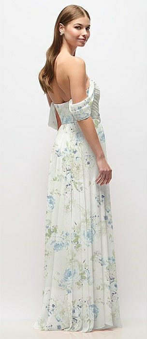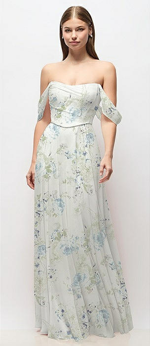 Chiffon Corset Maxi Dress with Removable Off-the-Shoulder Swags in bleu garden