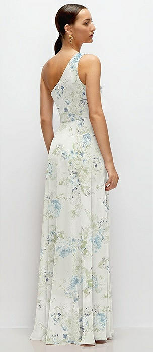 Chiffon One-Shoulder Maxi Dress with Circle Skirt in bleu garden