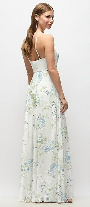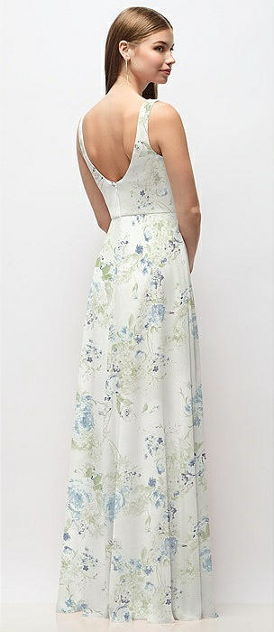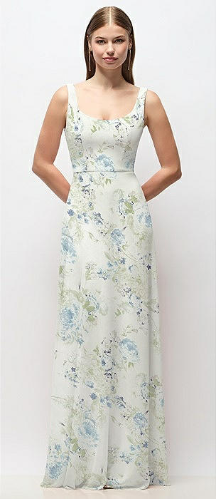 Square Neck Chiffon Maxi Dress with Circle Skirt in bleu garden