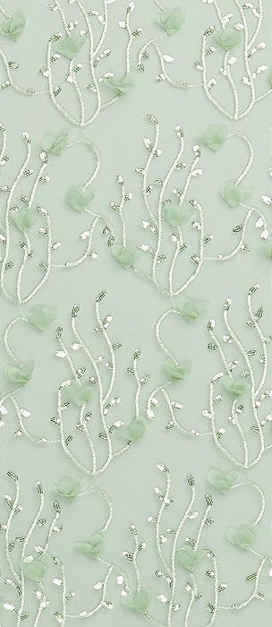 Shirred 3D Sequin Embroidery Floral Maxi Dress with Petal-Adorned Straps in celadon