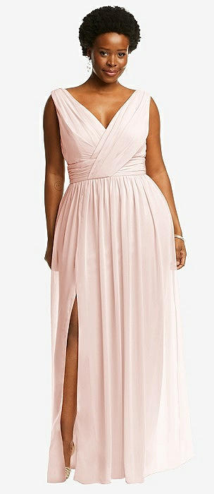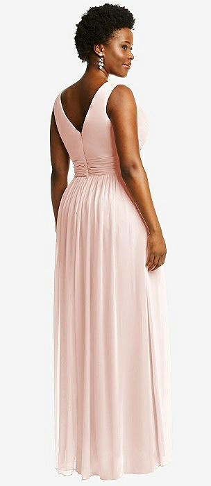 Sleeveless Draped Chiffon Maxi Dress with Front Slit in blush
