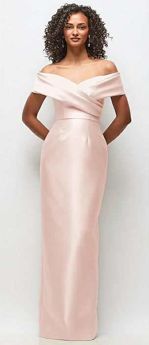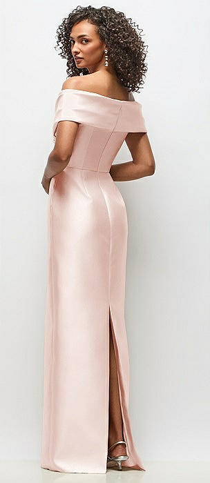 Off-the-Shoulder Cuff Trumpet Gown with Front Slit in blush