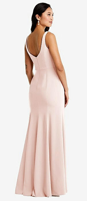 Off-the-Shoulder Bow-Back Satin Trumpet Gown in blush