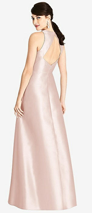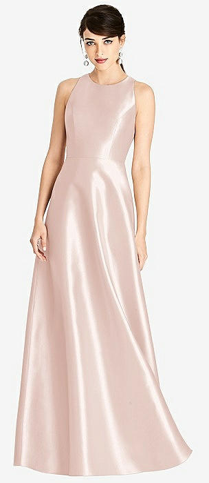 Sleeveless Open-Back Satin A-Line Dress in blush