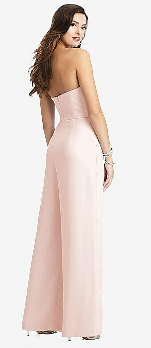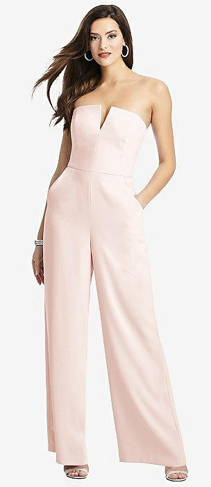 Strapless Notch Crepe Jumpsuit with Pockets in blush