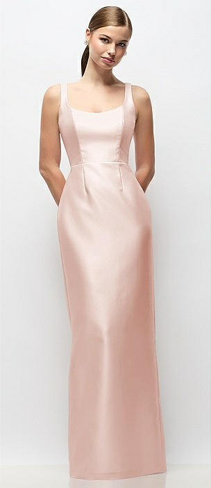 Strapless Bias Cuff Bodice Satin Gown with Pockets in blush