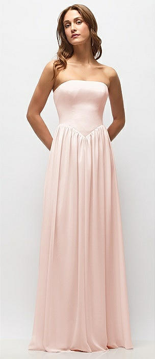 Strapless Basque Drop Waist Chiffon Maxi Dress with Shirred Skirt in blush