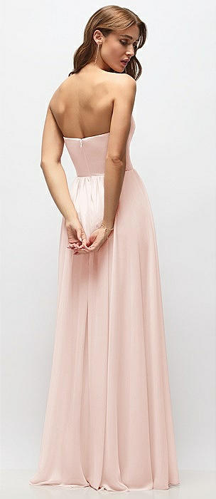 Strapless Scoop Back Maxi Dress with Front Slit in blush