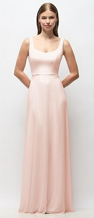 Scoop Neck Tank Strap Chiffon Maxi Dress in blush