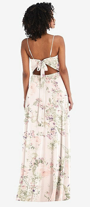 Tie-Back Cutout Maxi Dress with Front Slit in blush garden