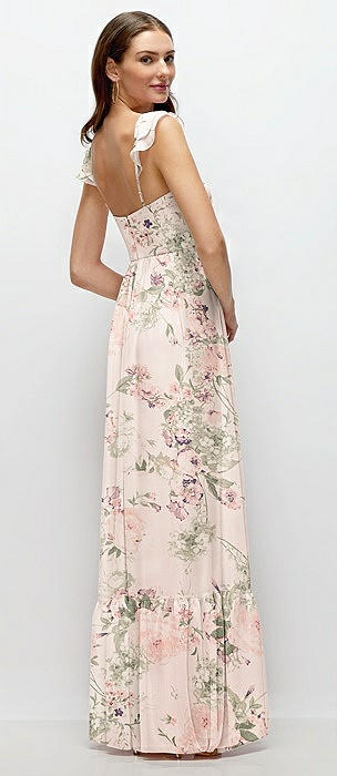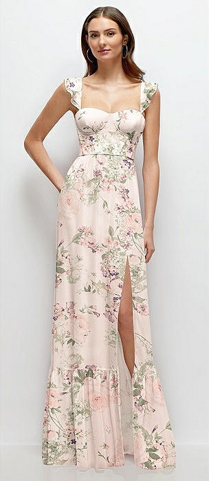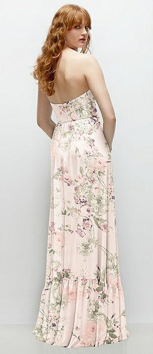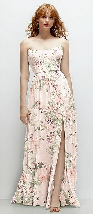 Strapless Cat-Eye Corset Maxi Dress with Ruffle Hem A-Line Skirt in blush garden
