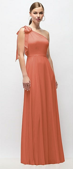 Tie Shoulder Empire Waist Junior Bridesmaid Dress in terracotta copper