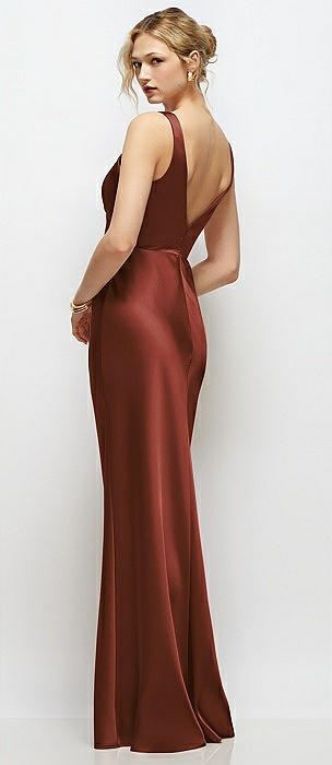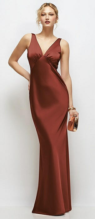 Sleeveless V-Neck Stretch Satin Bias Slip Maxi Dress in auburn moon