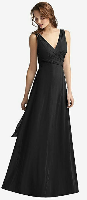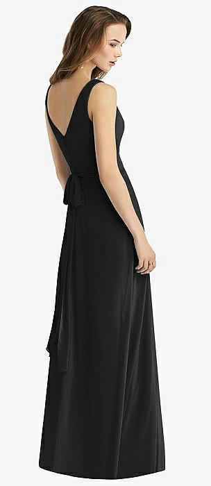 Sleeveless V-Neck Chiffon Wrap Dress in black