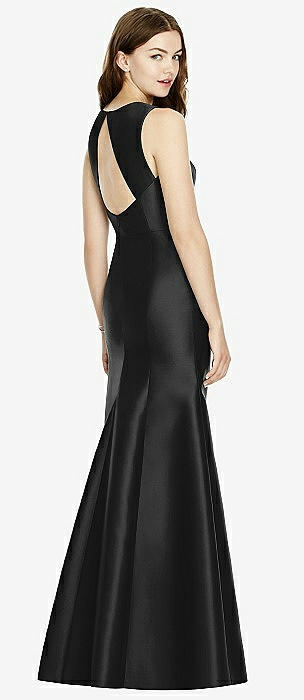 Sleeveless Keyhole Back Satin Maxi Dress in black