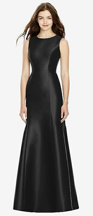Scoop Neck Satin Column Maxi Dress with Bow at Empire Waist in black