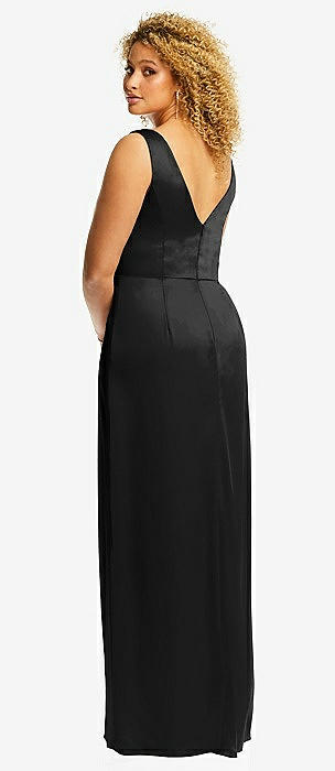 Sleeveless Draped Wrap Bodice Stretch Satin Column Maxi Dress in black