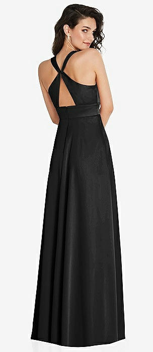 Tie-Back Cutout Maxi Dress with Front Slit in black
