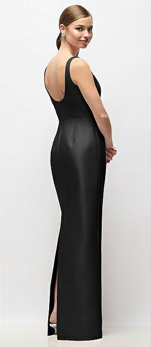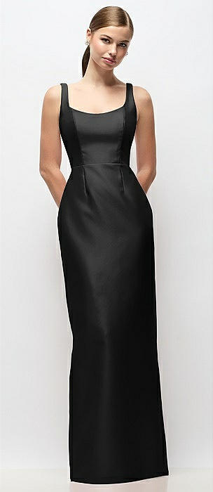 Scoop Neck Satin Column Maxi Dress in black