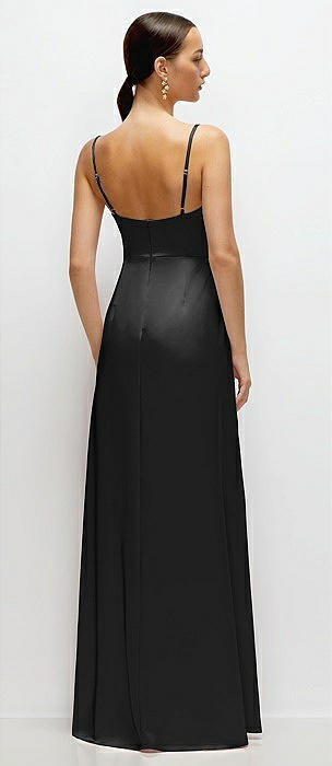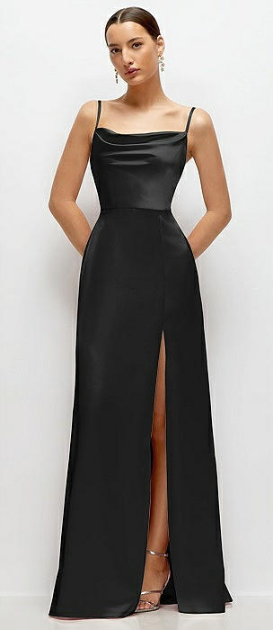 Cowl Neck Satin Maxi Dress with Adjustable Spaghetti Straps in black