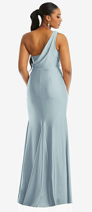 One-Shoulder Asymmetrical Cowl Back Stretch Satin Mermaid Dress in mist