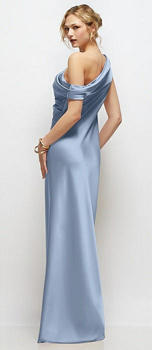 Draped One-Shoulder Bias Stretch Satin Maxi Dress in cloudy
