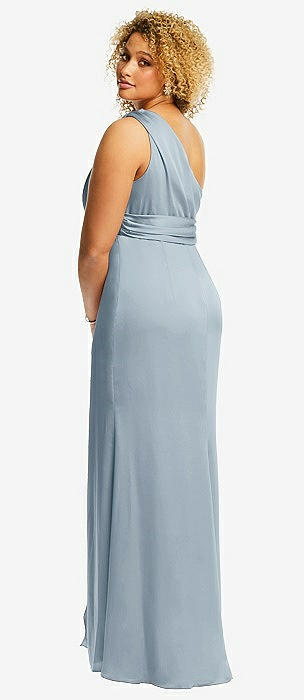 One-Shoulder Draped Twist Empire Waist Trumpet Gown in mist