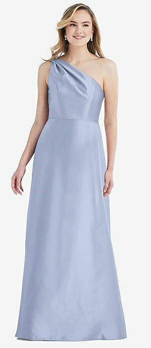 Shirred One-Shoulder Satin Trumpet Dress - Maddie in french blue