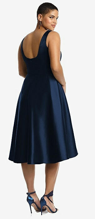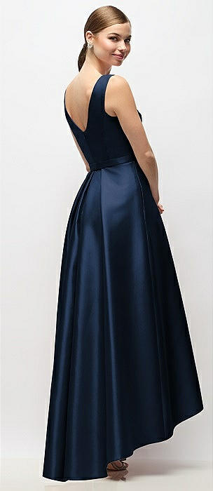 Bateau Neck Satin High Low Cocktail Dress in midnight navy