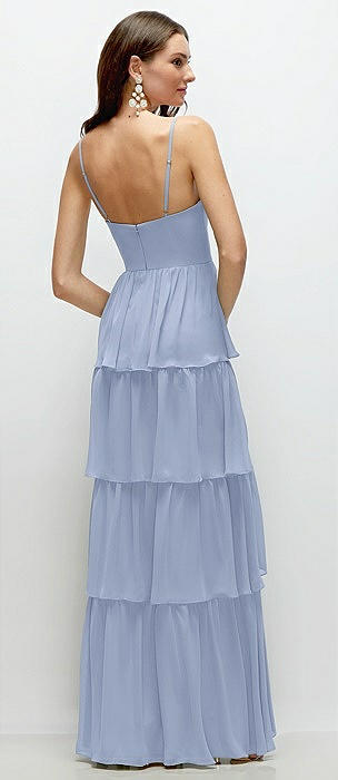 Bustier-Style Chiffon Tiered Ruffle Maxi Dress with Adjustable Straps in sky blue