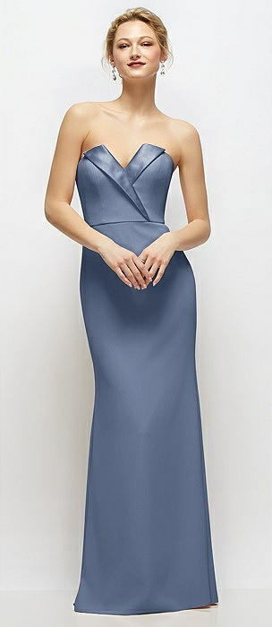 Strapless Notch Satin Gown with Pockets in sky blue
