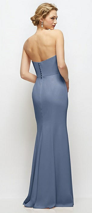 Strapless Crepe Tuxedo Gown with Satin Lapels and Buttons in larkspur blue