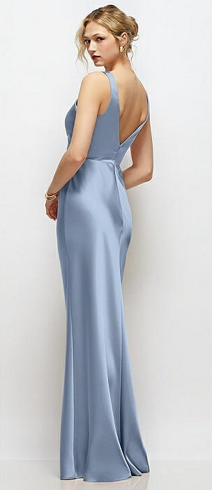 V-Neck Halter Satin Trumpet Gown in sky blue