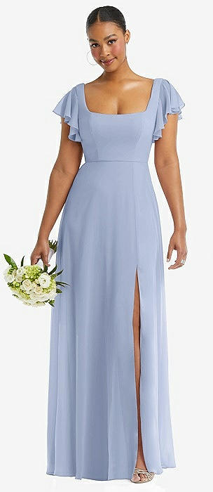 Flutter Sleeve Scoop Open-Back Chiffon Maxi Dress in sky blue