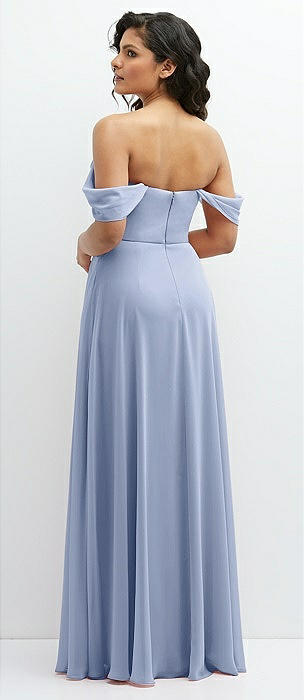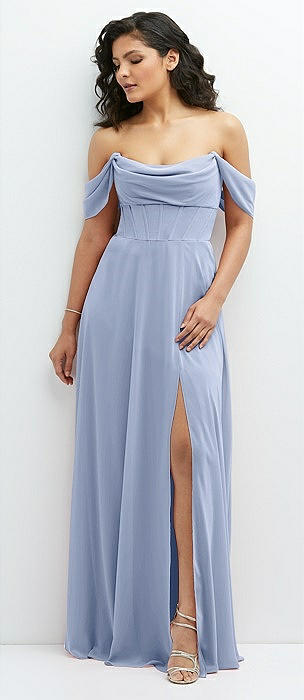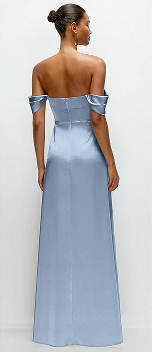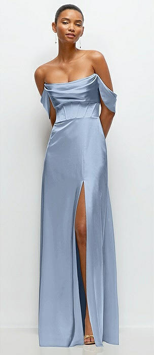 A-Line Satin Maxi Dress with Convertible Off-the-Shoulder or Strapless Looks in cloudy