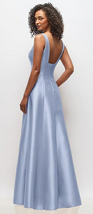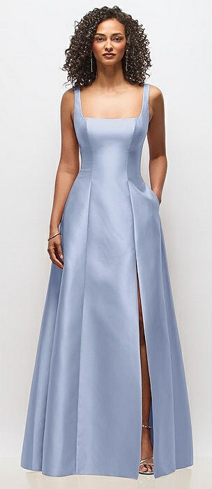 Sleeveless Square-Neck Princess Line Gown with Pockets in sky blue