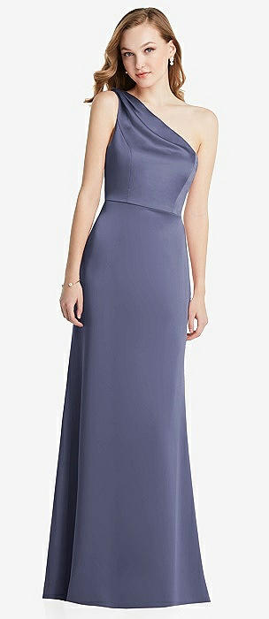 Shirred One-Shoulder Satin Trumpet Dress - Maddie in french blue