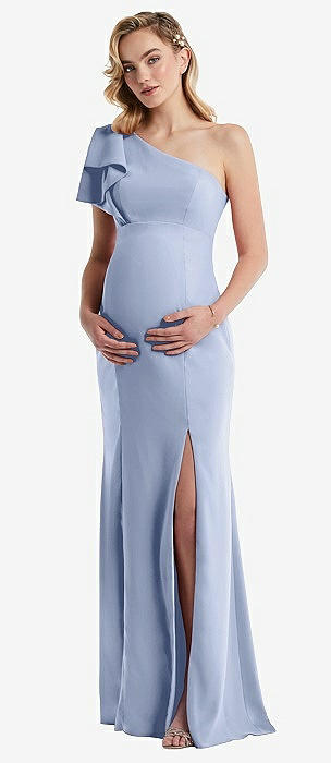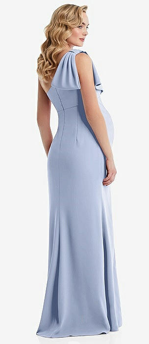 One-Shoulder Ruffle Sleeve Maternity Trumpet Gown in sky blue