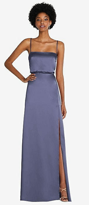 Flat Tie-Shoulder Empire Waist Maxi Dress with Front Slit in french blue
