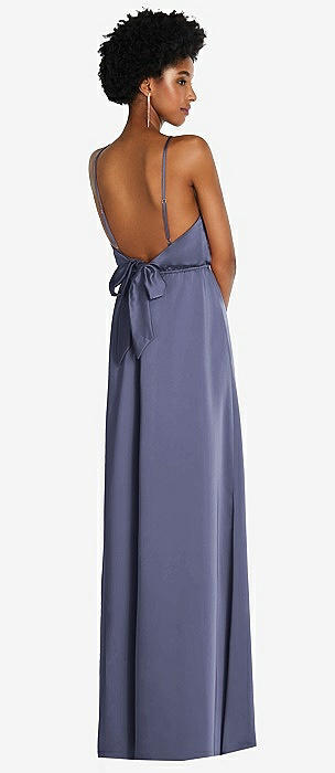 Low Tie-Back Maxi Dress with Adjustable Skinny Straps in french blue