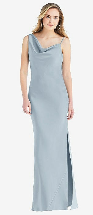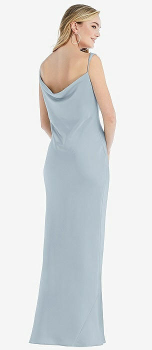 Asymmetrical One-Shoulder Cowl Maxi Slip Dress in mist