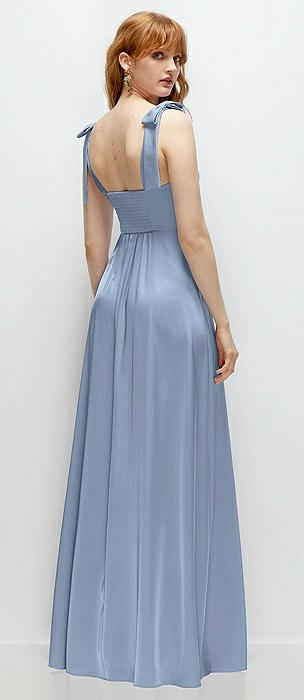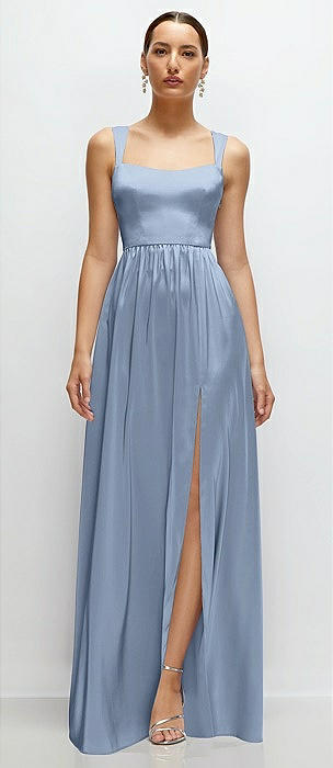 Square Neck Fluid Satin Maxi Dress with Bow Straps in cloudy