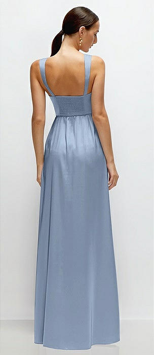 Shaped Strap Portrait Neckline Fluid Satin Maxi Dress with Full Skirt in cloudy