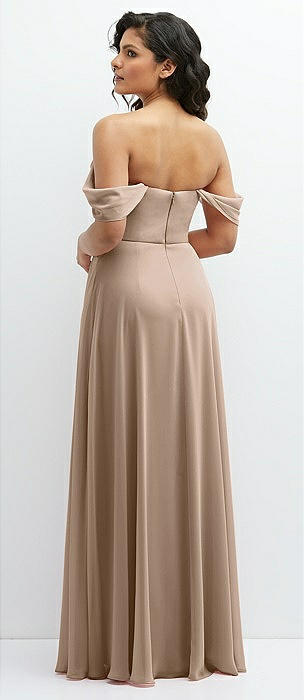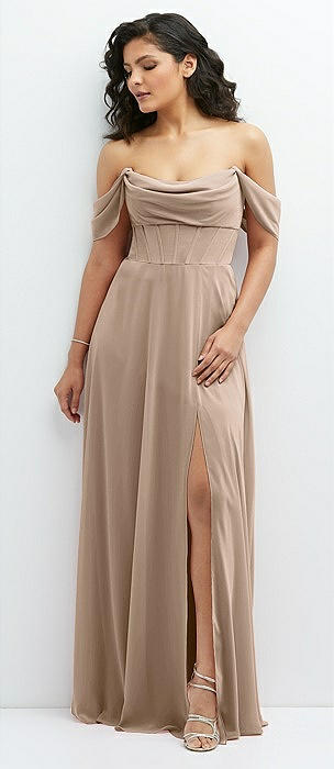 Chiffon Corset Maxi Dress with Removable Off-the-Shoulder Swags in topaz