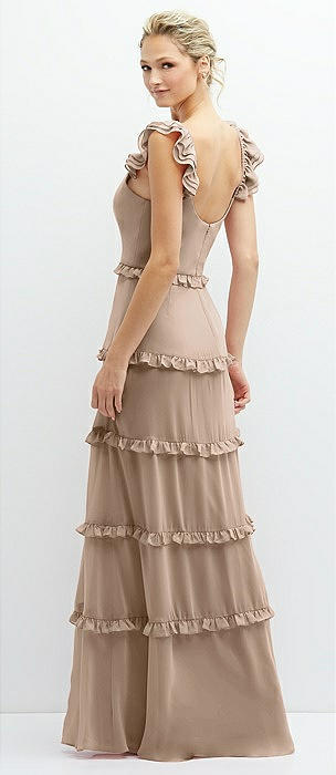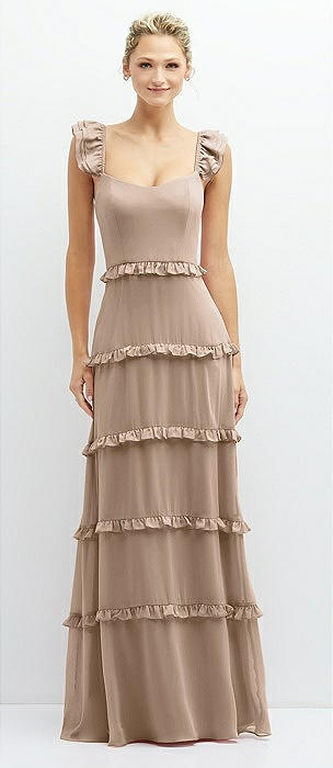 Tiered Chiffon Maxi A-line Dress with Convertible Ruffle Straps in topaz