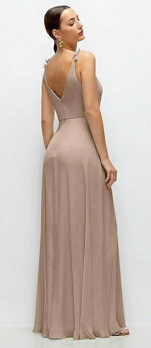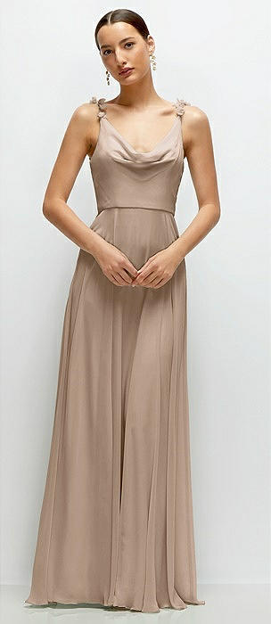 Cowl Neck Chiffon Maxi Dress with Hand-Worked Petal Straps in topaz