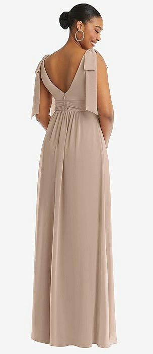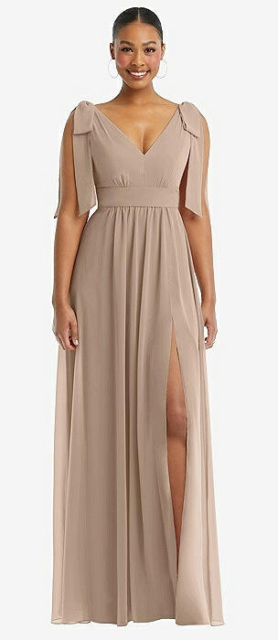 Plunge Neckline Bow Shoulder Empire Waist Chiffon Maxi Dress