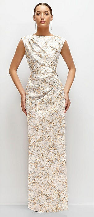 Floral High Neck Sleeveless Cap Shoulder Satin Maxi Dress in golden hour