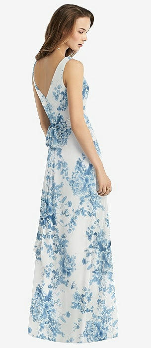 Sleeveless V-Neck Chiffon Wrap Dress in cottage rose dusk blue