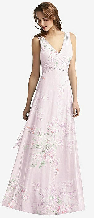 Sleeveless V-Neck Chiffon Wrap Dress in blush garden